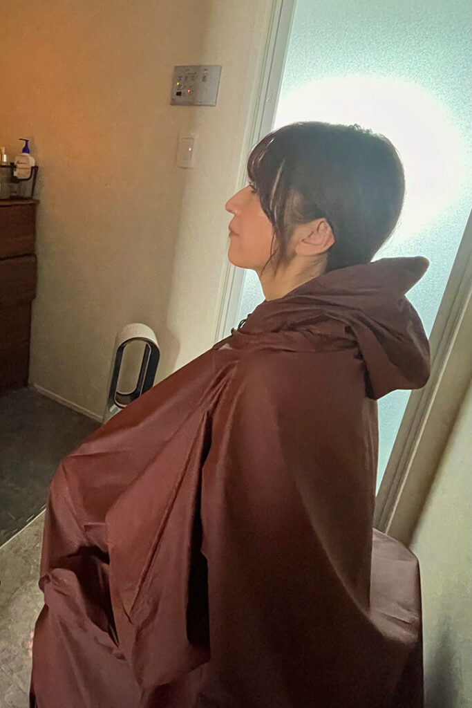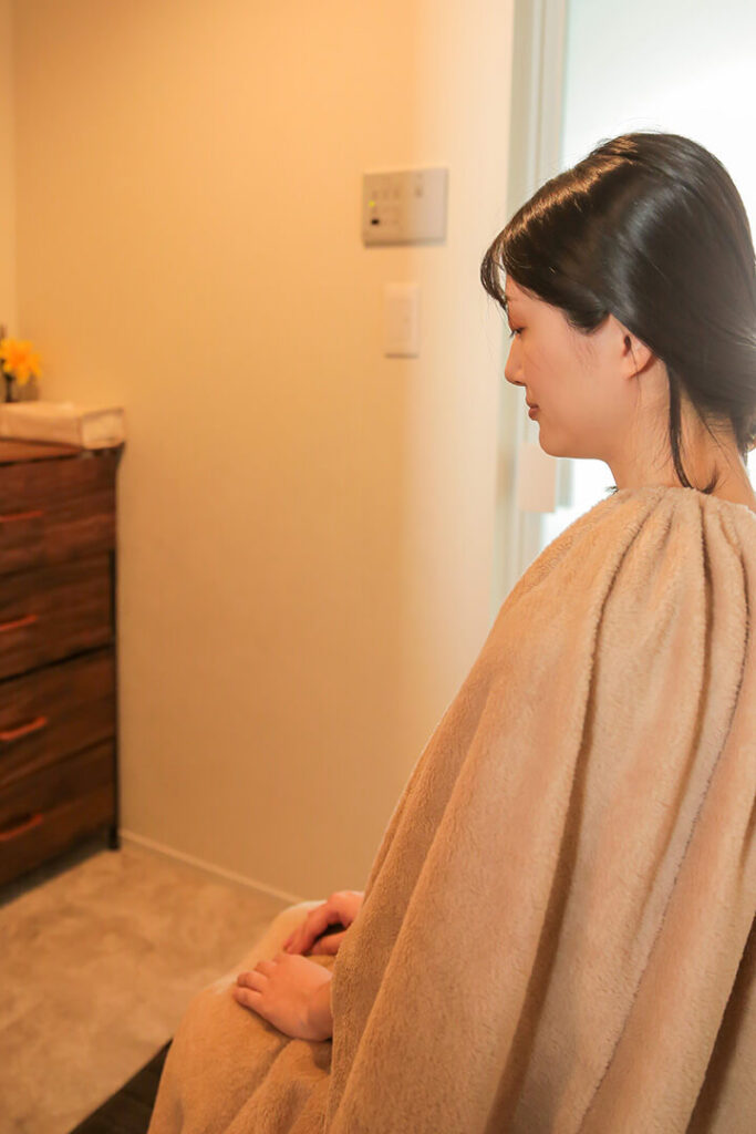 下着を外して専用のマントをかぶり、首から下を覆います。